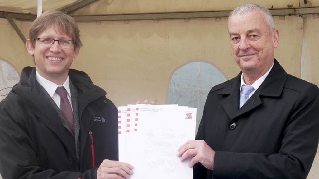 ABG Geschäftsführer Junker bei der Entgegennahme von Unterlagen. Foto: ABG